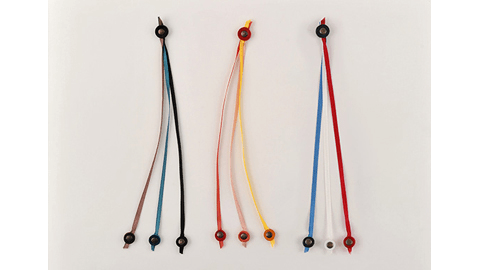 革製品ブランド「エムピウ」と作った手帳に3つのしおりを追加できる、リボン製のオリジナルブックマークです。3色のリボンがハトメによって1ケ所で留められていて、手帳にはさむと、自然に安定して使えます。かわいい形と色は手帳の見た目のアクセントにもなります。2種類の長さがあるので、お使いの手帳に合わせてお選びください。ことしは「トリコロール」の色味を落ち着きのあるものに変更しています。