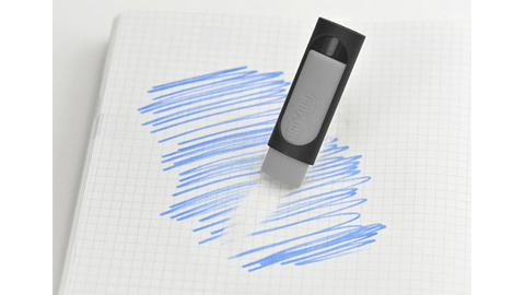 書いた文字を消すことができる筆記具「フリクションシリーズ」専用のイレーザーです。こすると摩擦熱が起きて、フリクションインキで書いた文字をきれいに消すことができます。「広い面をすばやく消せる」「角で細かい部分をきれいに消せる」ほか、鉛筆用の消しゴムと違ってほとんどイレーザー本体が減らないため、半永久的に使えるという利点もあります。