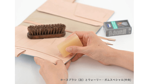 ──革のツヤを出し、経年変化させます