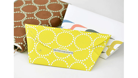 便せんがそのまま封筒になる、「ミナ ペルホネン」のレターセットです。満月のような丸い形の便せんをガイドにそって折りたたむとそのまま、かわいい台形の封筒ができあがります。直接メッセージを書き込んだり、また別の便せんと組み合わせて封筒として使うなどさまざまな使い方をたのしむことができます。5つの柄が各2枚ずつ、合計10枚入っています。(裏側はすべて、薄い色が引かれた無地です)
