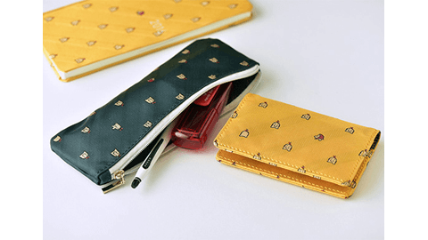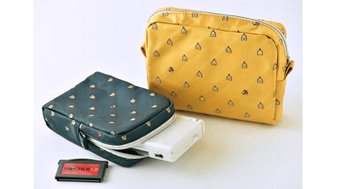WEEKS「MOTHER2 どせいさん」とおそろいのネクタイ生地を使った、ケースとポーチです。色はイエローとグリーンの2種類で、グリーンはこのケース・ポーチのみのオリジナルカラーです。たのしそうに歩くどせいさんの間に、ところどころ横向きや後ろ向きのどせいさんや、赤いずきんをかぶったおしのびどせいさんがまぎれこんでいます。コシのあるネクタイ生地は長くきれいな状態で持ち続けられるのも特長。WEEKSといっしょに持つことのできるペンケース、カードケース、そして2種類のポーチを作りました。「すこしよこなが」はニンテンドー3DSLLまで入る、携帯ゲーム機にぴったりのサイズです。「すこしたてなが」は充電器などをまとめて持つのにちょうどいいサイズです(ニンテンドーDSも入ります)。