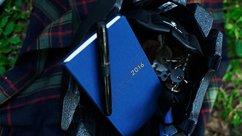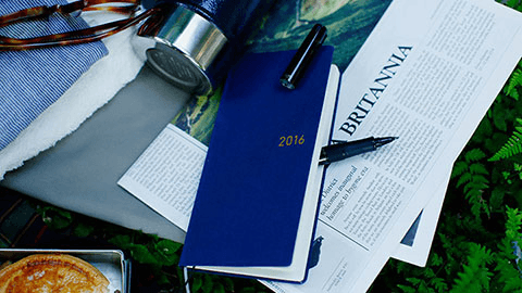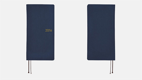 シンプルながら個性的な5色の「カラーズ」。ザラッとした手触りの表紙にはドイツの書籍装幀用の生地が使われていて、洋書のような雰囲気をかもし出しています。知的な印象のある「ネイビー」は、持つ人をスマートに見せてくれそうです。表紙の「2016」の文字には明るい黄色を使い、色の対比でネイビーの印象をより高めています。印象を変えてみたいときには「柄入りクリアカバー」との組み合わせもおすすめ。