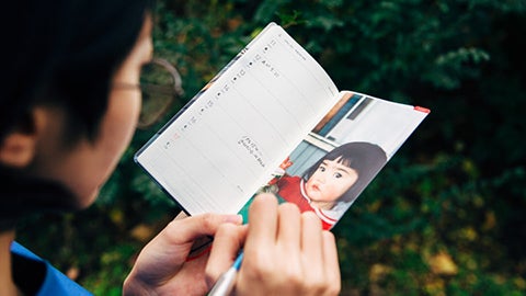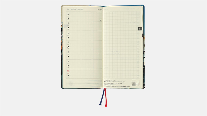 写真家の川島小鳥さんが、佐渡島で出会った女の子を撮影した写真集『未来ちゃん』。「ほぼ日手帳 WEEKS」の表紙として、写真集には収録されていない、はじめての海外旅行に出かけた「未来ちゃん」の写真を使用しています。写真集のような装丁にするために、表紙には光沢のある表面加工をして、「2016」の年号も空押しにしました。「屋根うらの窓」の表紙で使用している写真は、天窓からひょっこり顔を出した「未来ちゃん」がパリの街並みを眺めているようすで、表紙から裏表紙にかけて、一枚の写真になっています。表紙と裏表紙の見返しにも、初めての街で、初めての文化に触れてはしゃぐ写真をプリントし、写真集を持ち歩けるような手帳です。また、特典の下敷きには佐渡島で撮影した、すまし顔とおどけた表情が印象的な写真を収録。しおりは、赤と青の2色です。おかっぱ頭に、真っ赤なほっぺ、天真爛漫な表情を浮かべる「未来ちゃん」がいつでもそばにいてくれるような手帳です。