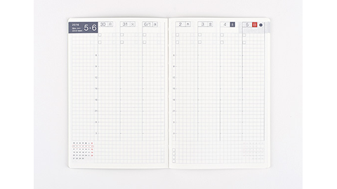 見開きで週の予定を管理できる週間手帳です。1日につき2項目の「チェックボックス」と「24時間の時間軸」があり、一週間の予定を見やすく書くことができます。手帳に最適な紙であるトモエリバー、自由に使いやすい方眼ベースのページ、180度パタンと開く糸かがり製本といった「ほぼ日手帳」の特長も引き継いでいます。オリジナルの手帳(文庫本サイズ)よりひとまわり小さめのサイズは、手帳カバーのポケットにぴったりおさまります。オリジナルの手帳をお使いの方で、通常版のカズンに収録されている「週間ダイアリー」を使いたい方にもおすすめです。