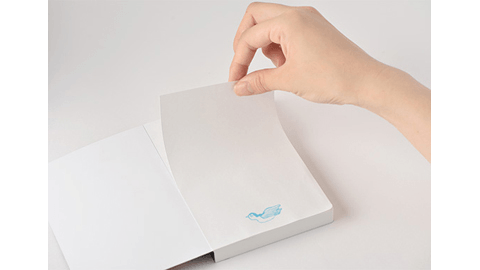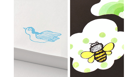 155枚の用紙が1冊にまとまった、文庫本サイズのメモ帳です。1ページごとにスッとちぎれる製本で、ちょっとしたメモを書いて誰かに渡したいときにも便利です。ことしのデザインはイラストレーターの大塚いちおさんにお願いしました。黒を基調にした表紙には「hobonichipaper(s)」のことばとともに、かわいい鳥や蜂、うさぎや蝶、花などの絵が描かれています。中のペーパーは無地ですが、ワンポイント、大塚さんの鳥のイラストが明るい水色で印刷されています。