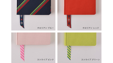 ほぼ日手帳WEEKSの後ろ見返し(手帳の裏表紙と本体をつなげている厚い紙)に、クリップで固定して使う、リボンのしおりです。ぱっと目をひく、遊び心のあるデザインはWEEKSに装着したときの様子もかわいいです。3本目のしおりとしてご活用ください。