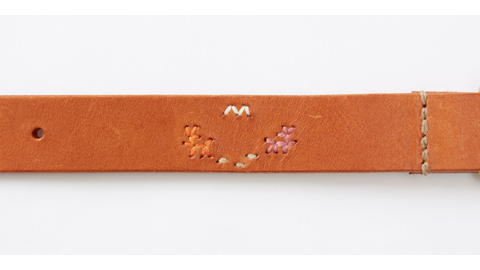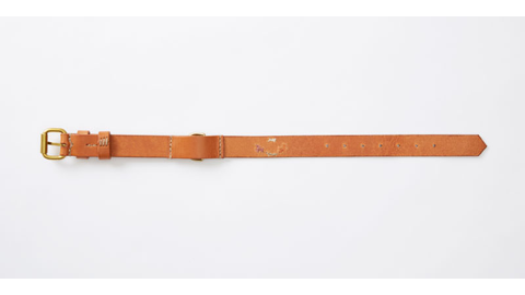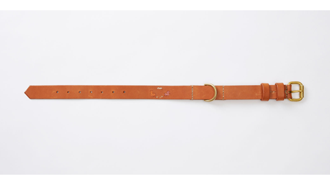 おおきめの中型犬から、大型犬用のサイズのくびわです。アンリさんのえらんだタンニンなめしの牛革を使い、Henry Cuir(アンリークイール)の特長である手刺繍で、アンリさんが別荘をもつエルバ島の海辺を仲良く遊ぶワンちゃんたちが描かれています。牛革のくびわのいいところは、使えば使うほど、いっしょに過ごした分だけ、経年変化をしていくこと。だんだんと色が濃くなっていく革の風合いや、もしかしたらついていくかもしれない傷などもふくめ、「いっしょに歩いた時間」としてたのしんでくださいね。なお、写真のモデルは首まわり34cm、体重は14kgです。