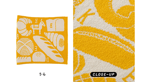 「最近、パンが好きです」と、福田さんが熱い思いで作ってくださったのがこのハラマキです。パンの中に、ロバもいますよ。その組み合わせに「なつかしい!」と感じた方もいらっしゃるかもしれません。(昭和ネタです)社内での人気もとても高かった一枚です。お子さんにも、かわいく巻いていただけます。