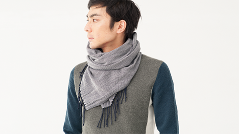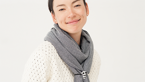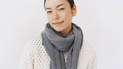 中羊糸の「3本縒り」の糸で、あたらしい肌触りのくびまきをつくりました。