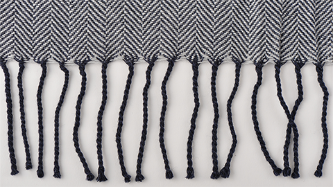 単一の素材でできた糸と違い、フリンジのねじれの形状を保持することがむずかしく、長くお使いいたき、洗濯を繰り返すうちに、