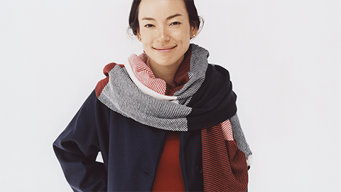 ストールサイズのくびまきは、「まく」だけでなく、「羽織る」あるいは「着る」ように、まとうことができるのもいいところ。