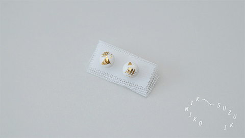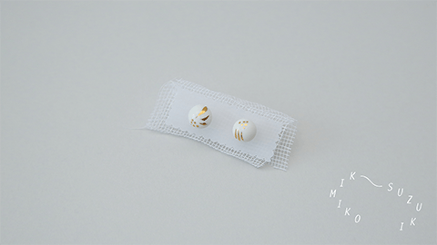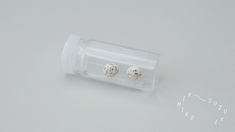 錠剤のように小さな小瓶入りピアス。花や雄しべ、雌しべなどをモチーフに金彩を施しています。手描きのため一点一点表情が異なり、さまざまな模様があるのが特長です。※画像はイメージです。一点一点つくっておりますので、金彩の入り方、絵柄等は若干異なる場合がございます。