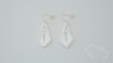 ペースト状にした磁土でレース模様を一点一点描いて焼き締めた一点もののシリーズです。強度を保つため、3~5回層にして高温焼成しています。金属部分は上品な光沢のK10YGを使用しています。