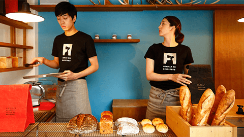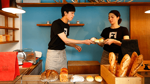 男性:ギャルソンエプロン¥3,990/fog linen work、パンツ¥19,950/ヤエカ(ヤエカ アパートメント ストア)
