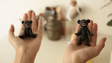 - 「手のり・誤解されやすいくま」は、基本的に観賞用です。落とすなどして強いショックを与えたり、乱暴に扱ったりすると、破損するおそれがありますのでどうかご注意ください。