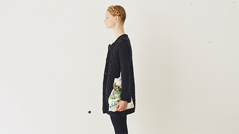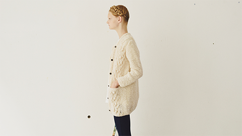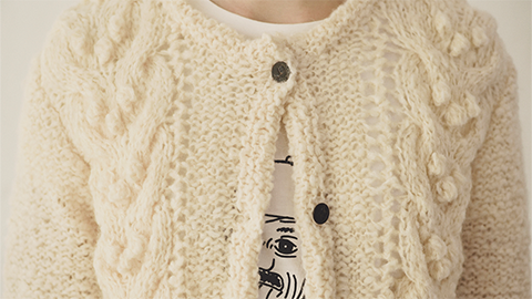 ウェアの編みものキット。すっきりしたシルエットの、こんなにかわいいカーディガンが自分で編めます。詳しい説明はこちら。