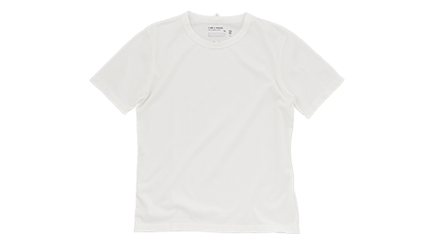 アンダーウエアとしても使える、男性用のクルーネック(丸首)Tシャツです。シャツの下などにも着やすいよう、身巾をすこしせまくして、腕まわりのシルエットをすっきりさせました。素材は、吊り編み機のスペシャリスト、和田メリヤス株式会社といっしょに開発しました。かるく、やさしい着ごこちですから、長時間着ていてもストレスフリー。もちろん、トップスとして、1枚でも着ていただけます。