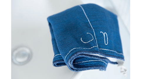 - 片面ガーゼ、片面パイルの二重織りのため、両面パイルのタオルの「厚さ」や「重さ」とは質感が異なります。