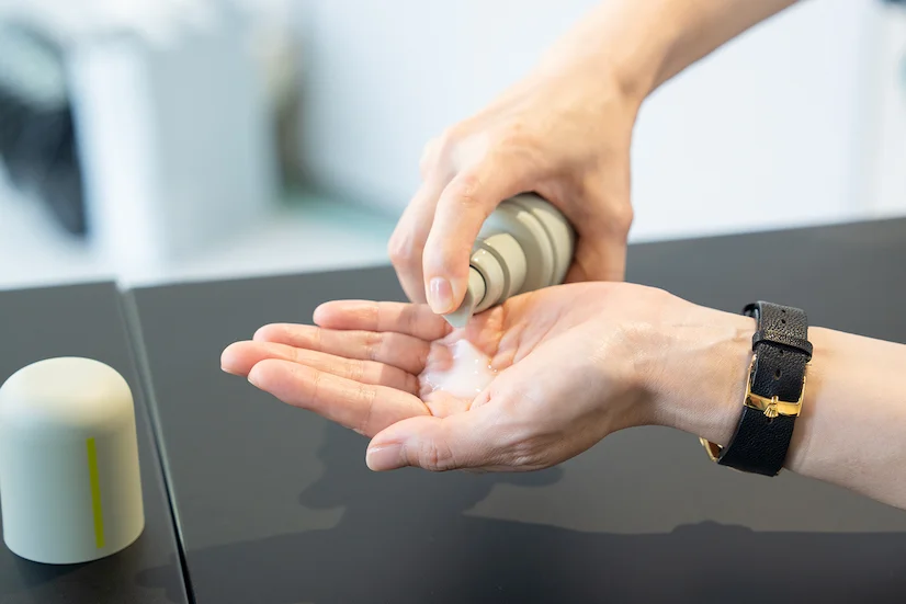 衣川 はい。 キューティクルを補修してくれるのと、 髪の内部にある「イソステアリン酸」(毛髪補修) という成分も流れていってしまうものなので、 そちらもあわせて配合しています。 他にもリペア ヘアオイルには、 補修効果の高いスクワラン、 保湿効果のあるオリーブ果実油、 ローズヒップ油(カニナバラ果実油)、 シソオイル(シソ葉エキス、スクワラン)など、 厳選したオイルブレンドになっています。 ヒートプロテクト効果もしっかりあるので、 ドライヤーの前は、こちらが先の方がいいと思います。 「リスタイリング ヘアセラム」は、 髪表面の水分の離れをよくしてくれるので、 オイルの後に使うとサラっとしますね。