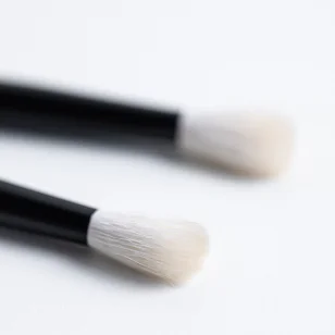 やわらかな山羊の毛を使った丸筆は粉含みが良く、 ブラシを回転しながらつけることで 何度もアイシャドウをつけ直す必要がありません。 ふんわり色を乗せられるのでつけすぎる失敗も少なく、 メイク初心者の方にもおすすめのアイテム。 草場さん主宰の、 週末だけのプライベートメイクアップサロン 「WEEKEND MAKEUP ROOM」 の印字入りです。