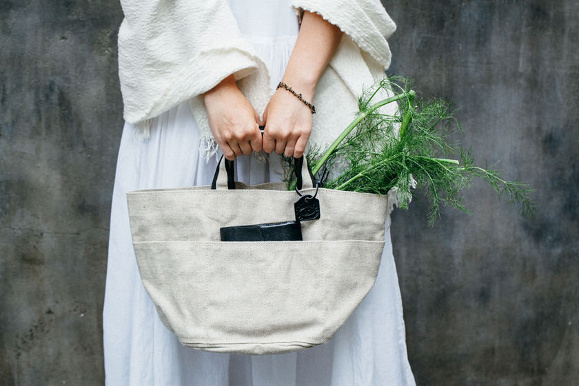 素材は、もともと丈夫なリネンを、2枚重ねに。