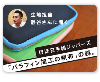 カバー素材は、パラフィン加工の帆布生地を採用。