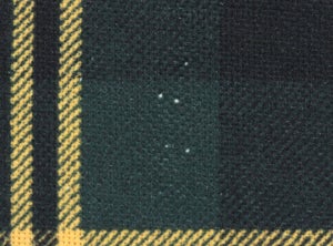- The polyester material used in print covers involve printing a design over white material, so the sewing process may expose white areas around the stitches. Please note that on rare occasions, there may be small black or white dots visible on the print, but this is an unavoidable aspect of the manufacturing process.