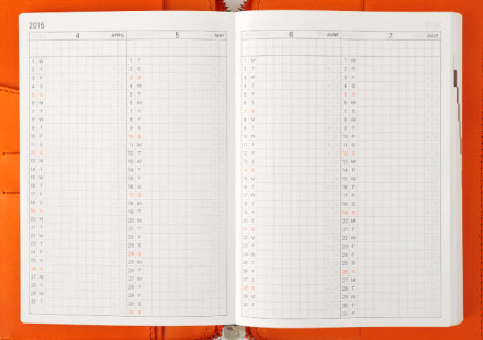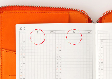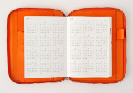 2015年と2016年のカレンダーを見開きに収めました。翌年の計画を立てる際にも、すぐに確認できて便利です。