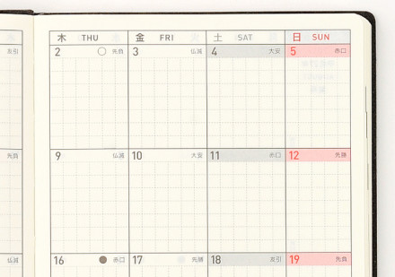 ※ほぼ日手帳では「1月の第1木曜日が含まれる週」を