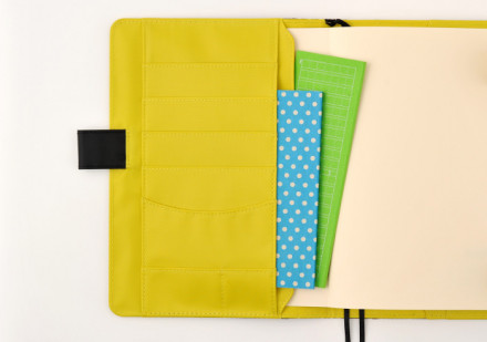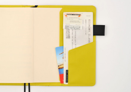 Beneath the card pockets is another full-size pocket that works great for larger items like postcards, envelopes, magazine clippings, coupons and sticker sheets. It can also hold specially-designed Hobonichi stationary.