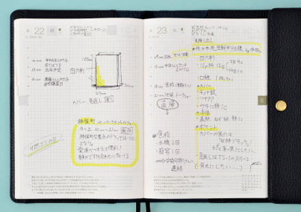 The larger A5 size of the Cousin means there is plenty of writing space. The book is great for desk use, for writing messages back and forth, and other broad uses that can take advantage of its size. The book is an ideal business and pleasure combination planner.