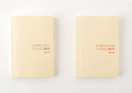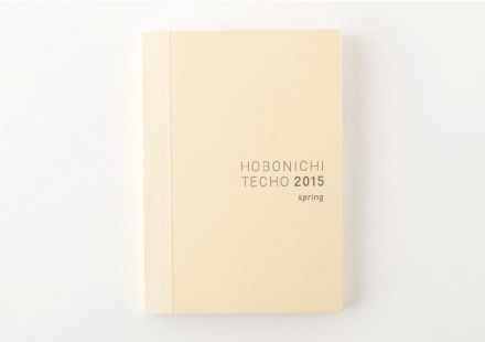 The front cover features the label "HOBONICHI TECHO 2015 spring," printed in gray letters if the book's weekly calendars start on Monday and red if they start on Sunday.