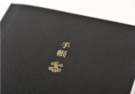 The Japanese characters for “techo,” along with the ARTS&SCIENCE logo, are stamped in gold on a chic, textured, matte-black cover.