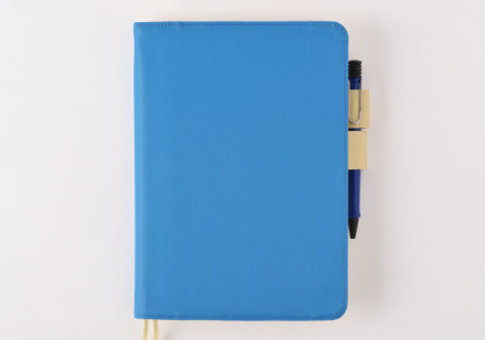 カバーの両端についている筒状の2つのペン差し。 ペンを通しておけば、手帳がカバンの中で開きません。 形状が蝶番(ちょうつがい)に似ていることから、 「バタフライストッパー」と名づけられました。