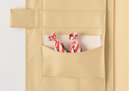 すぐに使う資料や地図など、 さっと取り出すものを入れるのに便利なポケットです。 2つ折りのA4用紙が収まる大きさです。