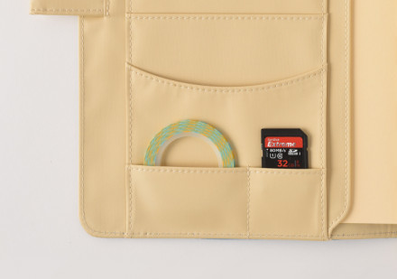 大きめのふせんやシールなど、カードポケットに 収まらないものを収納できる深さのあるポケット。 入れやすく、取り出しやすいよう口がカーブになっています。