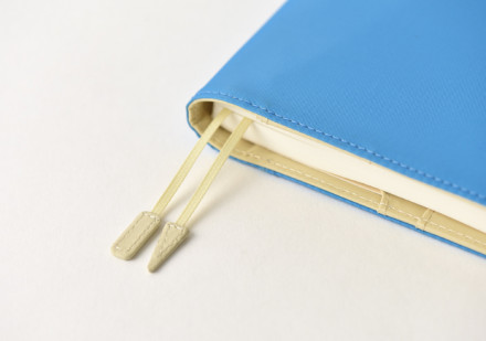 よく使うページに1本ずつ挟んでおくと便利です。 しおりの先には、三角と四角のチャームがついています。