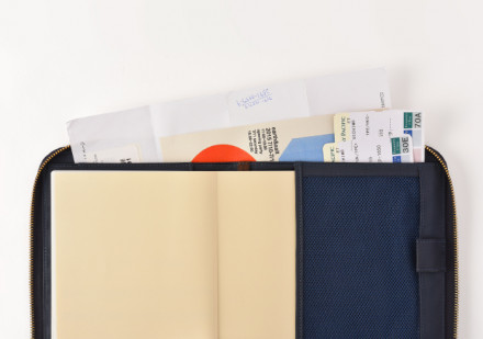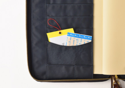すぐに使う資料や地図など、 さっと取り出すものを入れるのに便利なポケットです。 2つ折りのA4用紙が収まる大きさです。