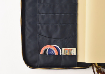 カードポケットの下に大きなポケットがあります。 雑誌の切り抜きやクーポン券、ポストカードなどを 入れるのにちょうどいいサイズです。