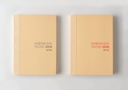 表紙の色は、やさしい色合いのアイボリー。 月曜はじまりは「グレー」、 日曜はじまりは「レッド」で 「HOBONICHI TECHO 2016 spring」と印字しました。