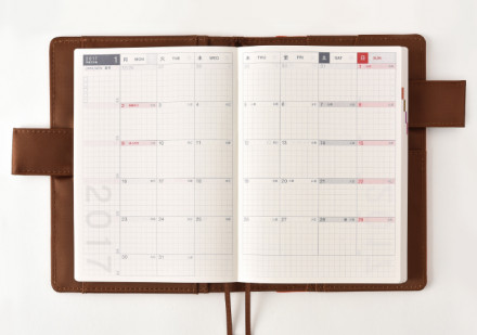 1日ごとに予定などを自由に書きこむことができます。 方眼がうすく印刷されているため小さな文字も書きやすく、 ボックス内を区切って使いたいときにも便利です。