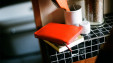 This zipper-type cover designed in collaboration with ARTS&SCIENCE has been greatly simplified into a slim but functional design constructed of vegetable-tanned leather from an artisan in Tuscany, Italy. It is an incredibly durable and dense leather material similar to that used in belts. The bright orange color exudes all the charm of Italy, making it a superb fashion accessory for both men and women.