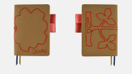 Cacuma is a fashion brand created in collaboration with art director/designer Yoshie Watanabe and Hobonichi. This Cacuma-brand cover features red embroidery on coarse canvas material. The pattern seems abstract at first glance, but open the cover and view it in full to see the image of a rose embroidered in a way that looks like a single-stroke drawing.