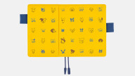The deep blue colors against the bright yellow background is a color scheme that enlivens users of all ages. The cover material is made with cotton that’s warm to the touch. The Dokonoko logo on the interior pocket is also illustrated by Ohashi.