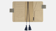 The pen holder is designed to perfectly fit the 12.2mm (0.48”) diameter Jetstream pen offered as a free bonus gift with select Japanese-version Hobonichi Web Shop products. Pens with certain shapes and materials may be difficult to pull through the holder. The holder can fit pens up to 13.5mm (0.53”) in diameter.