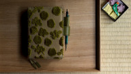 This textured cotton-flax fabric is covered in images of green plants that seem to grow right off the cover. The woven fabric, Koyaguchi Pile, is made at the foot of Mt. Koya in Wakayama Prefecture and has a soft texture that feels heavenly to the touch.
