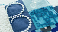 This color-coordinated “blue mix” collection includes 7 different designs, each with a unique texture, thickness, material, and even age. Each fabric patch is cut from a different spot in the original textile and sewn into the patchwork by hand, giving every cover an entirely unique look.