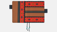 The color scheme works well as a Hobonichi Techo cover because it’s so pleasant to look at on a daily basis. The design, a recreation of patterns often used in weaving, was originally hand-drawn by World Folk Patterns series designer Masako Kusakabe and is printed onto the cover.