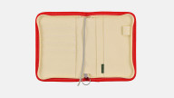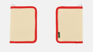 The coarse, off-white cotton canvas surface feels pleasant to the touch and is outlined with bright tomato-red piping. You can handle the cover as roughly as you would a sturdy tote bag, and never tire of its nice look as you carry it with you every day.