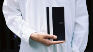 The distinct white line running down the faux-leather cover is the trademark of this annual design.